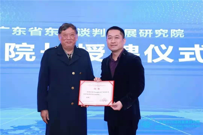 接下来,进行了广东省东方谈判发展研究院聘书颁发仪式,广东省监察厅原副厅长武田和广州黄埔区药监局原局长刘晓金作为特邀嘉宾分别为新一届领导班子颁发聘书。
